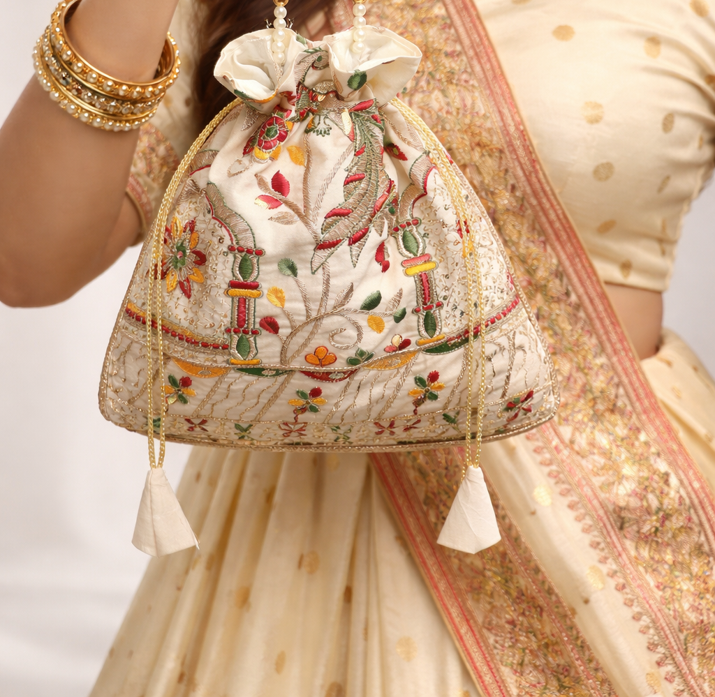 Crafted from rich Paithani silk, this exquisite batwa blends timeless heritage with modern elegance. Adorned...