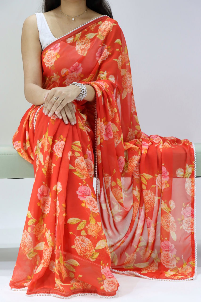 Weightless Printed Saree With Pearl Lace Border