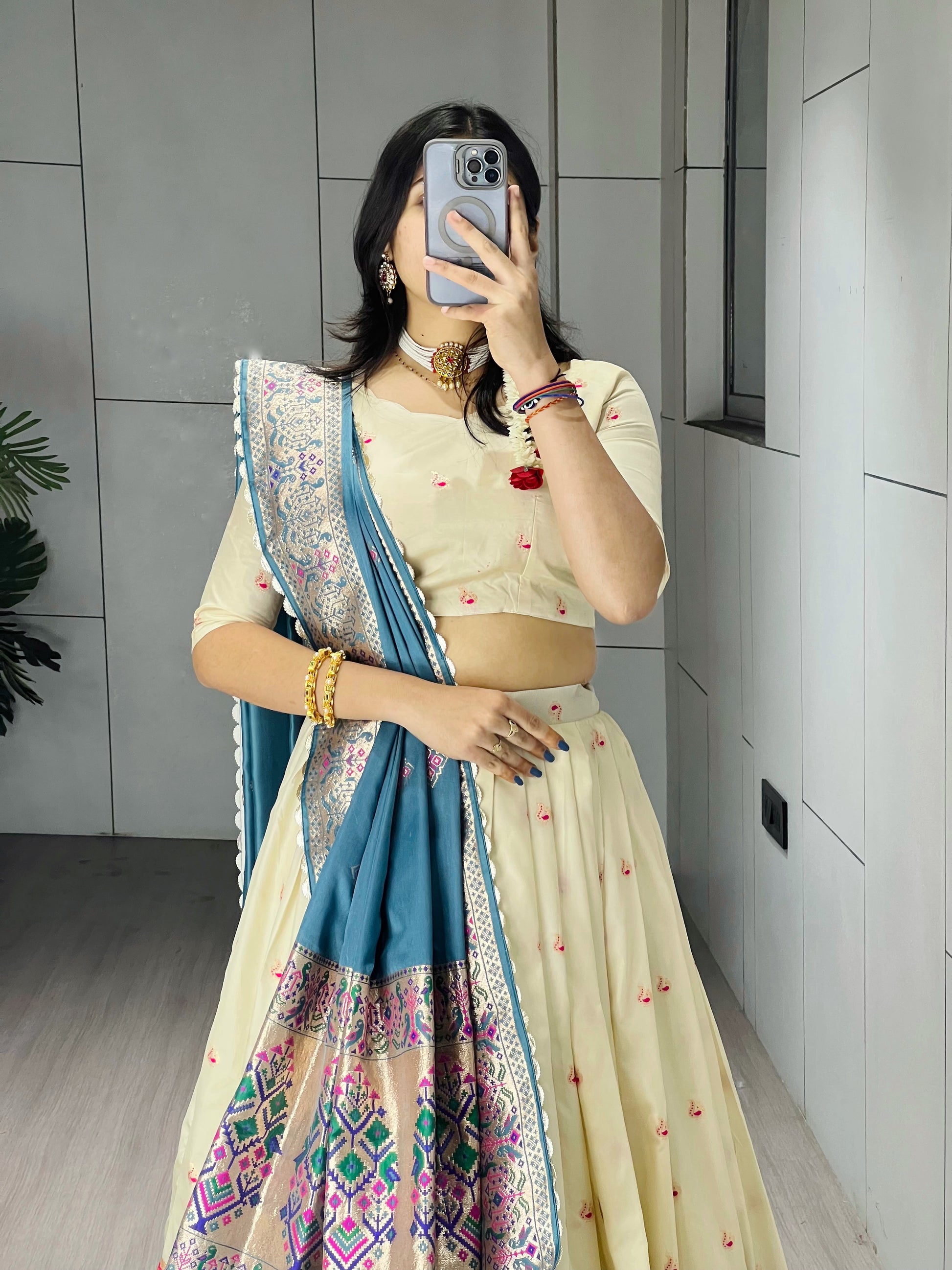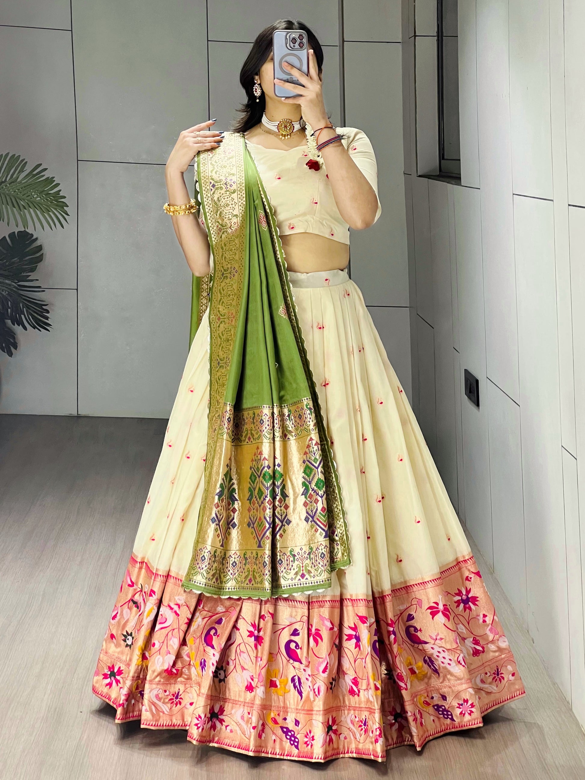 Elegant Cream Paithani Silk Lehenga Set with Dupatta