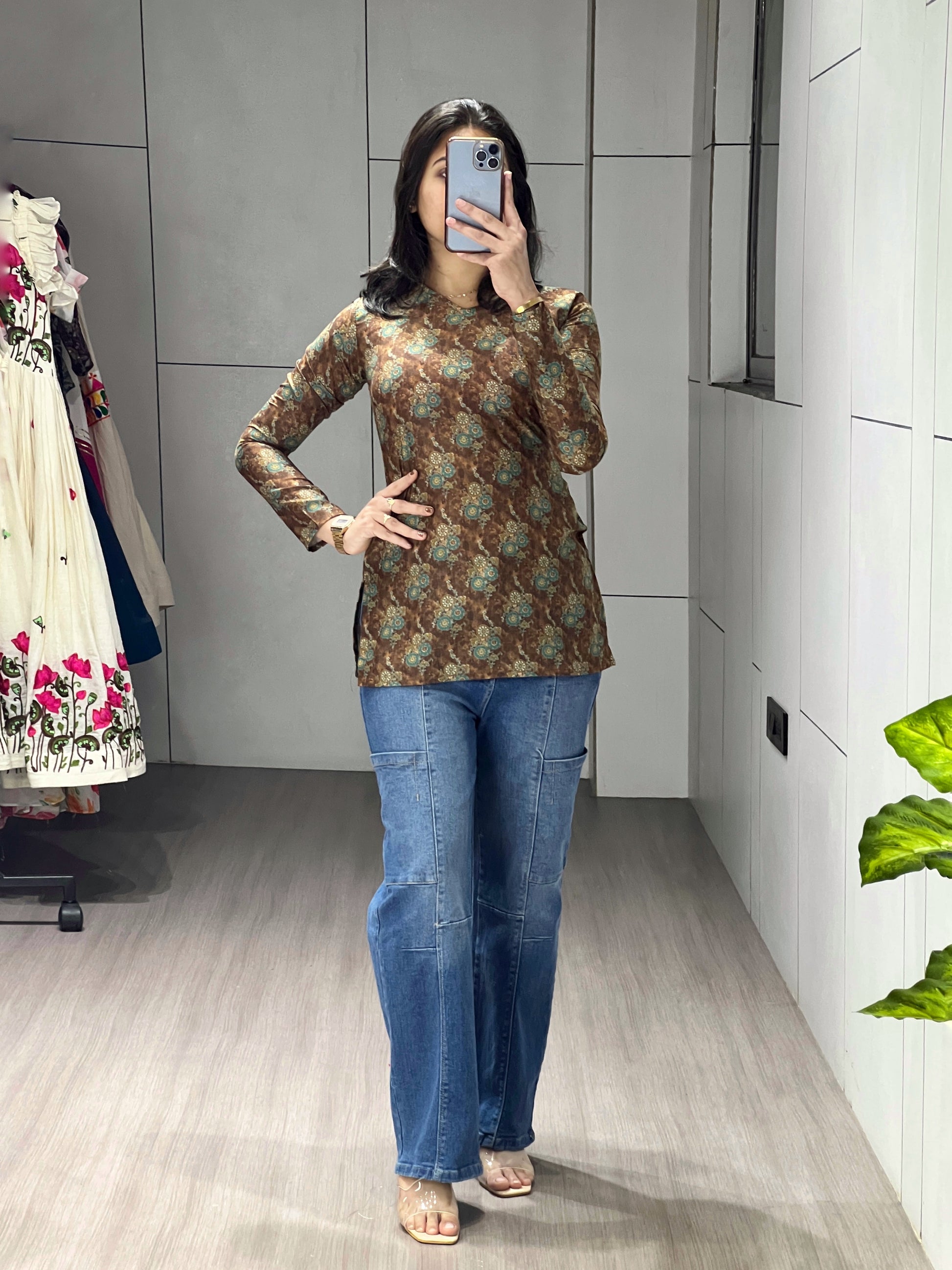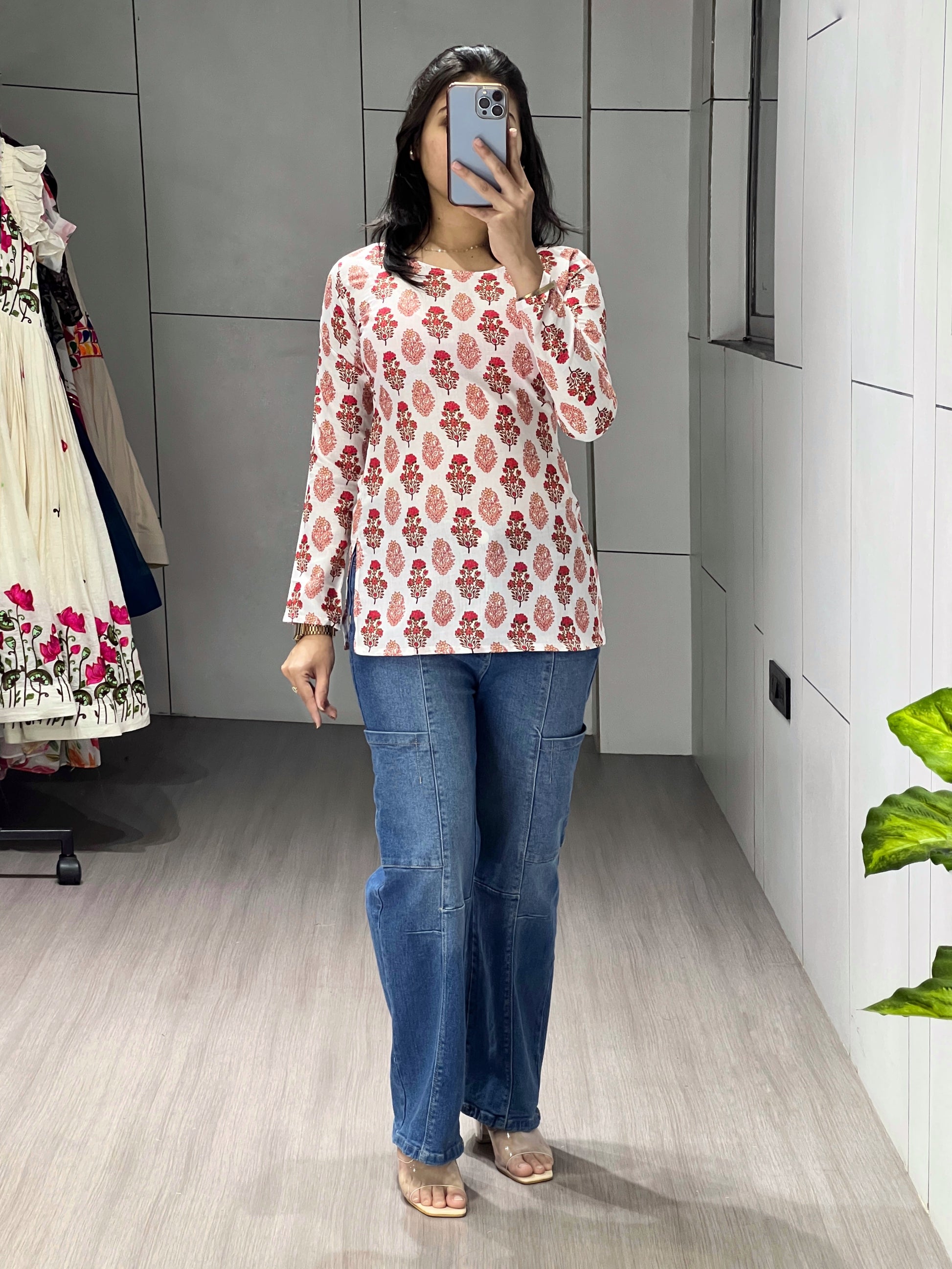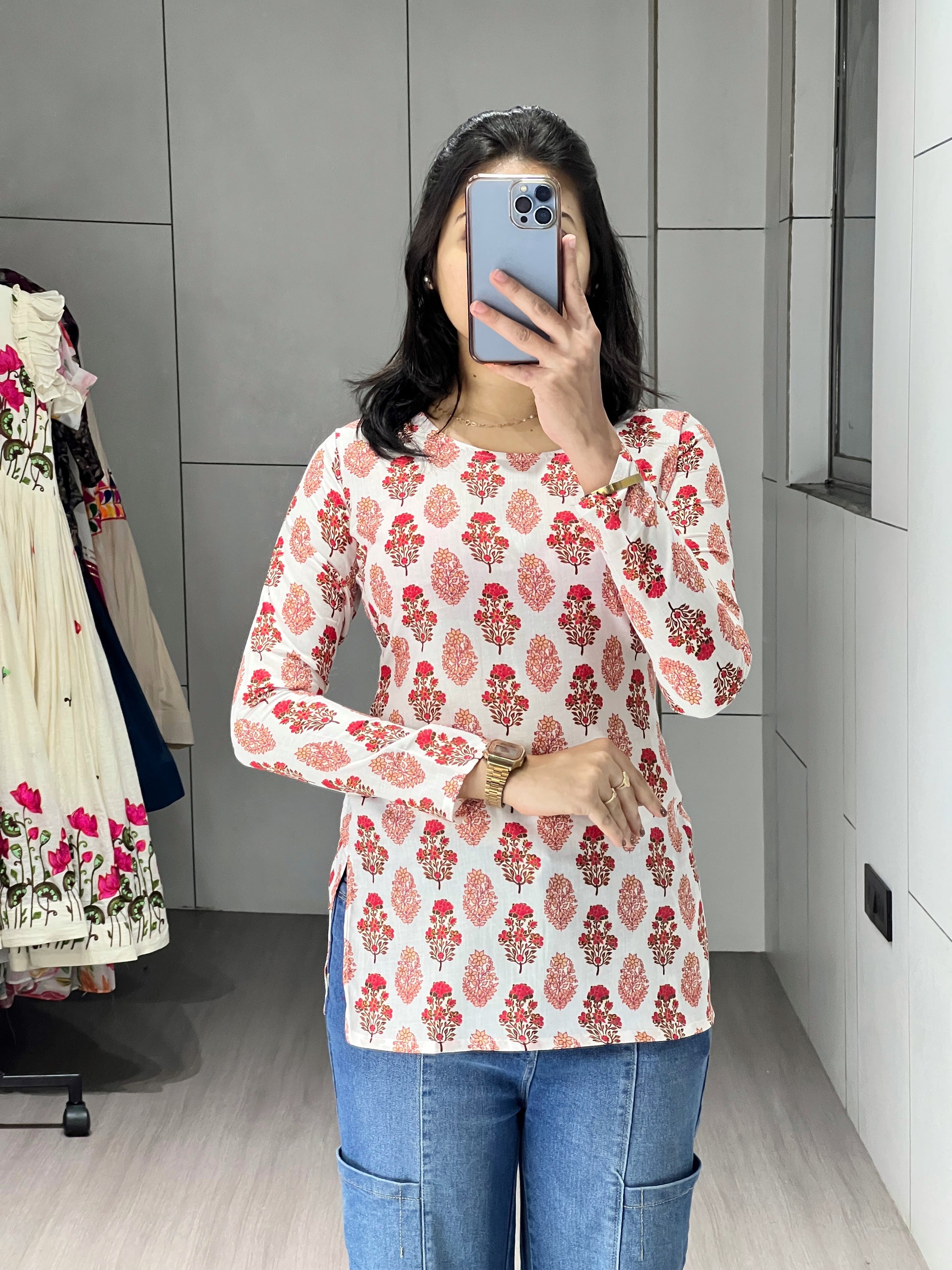 Elevate your 9-to-5 wardrobe with our chic short kurtis, featuring subtle floral prints that add a fresh touch to professional wear,Experience all-day comfort without compromising on elegance.